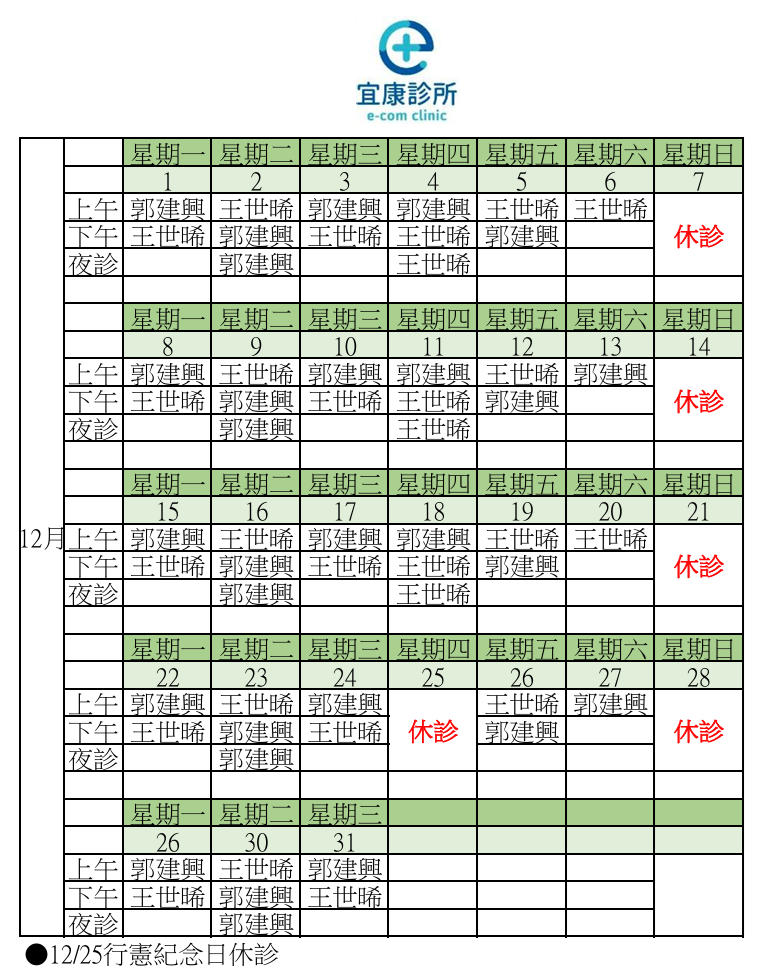 2025年12月門診表
